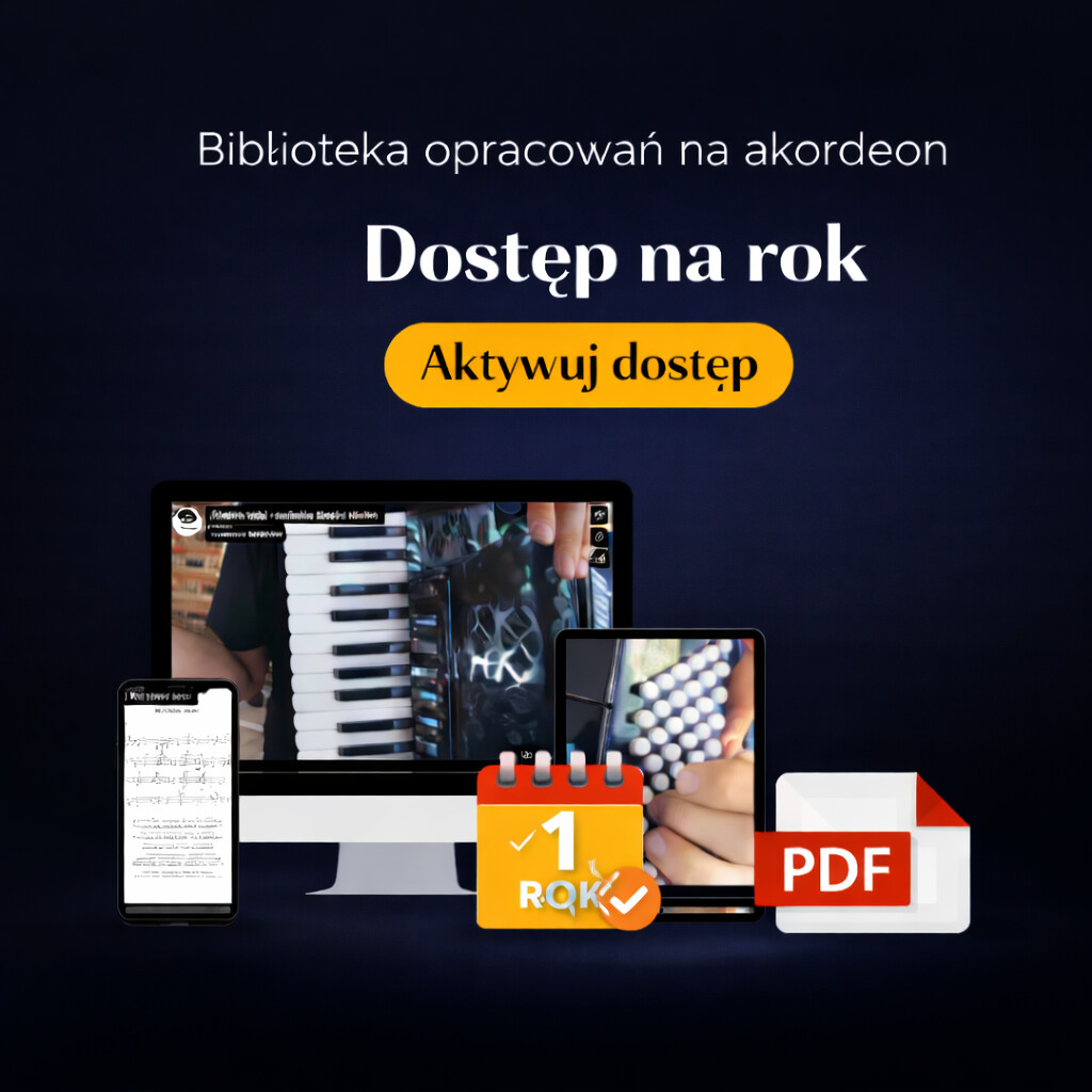 Do każdego utworu masz nuty do pobrania – idealne dla tych, którzy kiedyś grali z nut, a teraz chcą znów wrócić do akordeonu po 30 czy 50 latach.